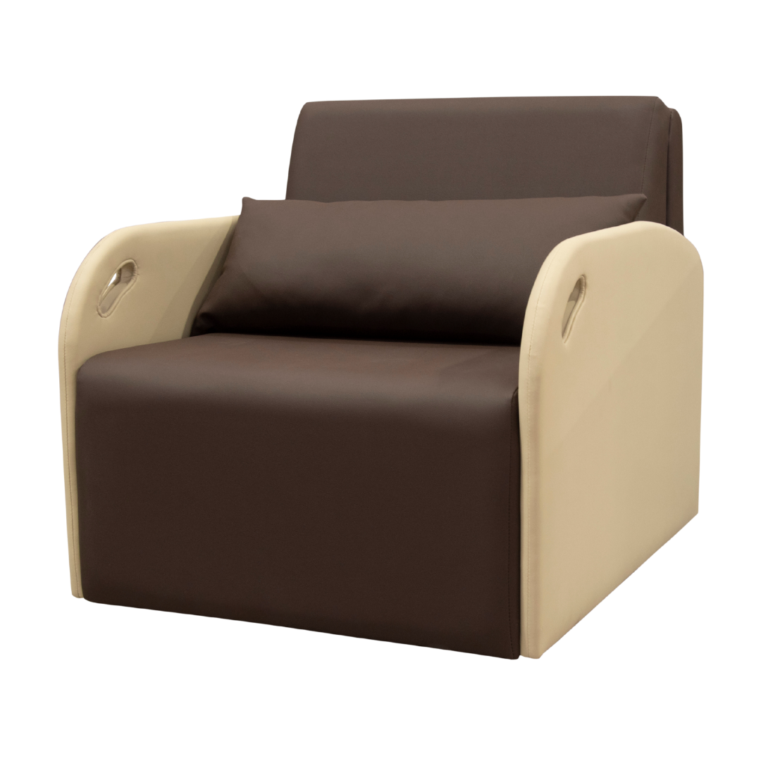 A Poltrona Cama Flex 800 foi desenvolvida para ambientes hospitalares que exigem máxima funcionalidade em espaços reduzidos. Quando fechada, atua como uma poltrona confortável para acompanhantes; ao ser aberta, transforma-se rapidamente em uma cama, oferecendo suporte adequado para descanso prolongado.