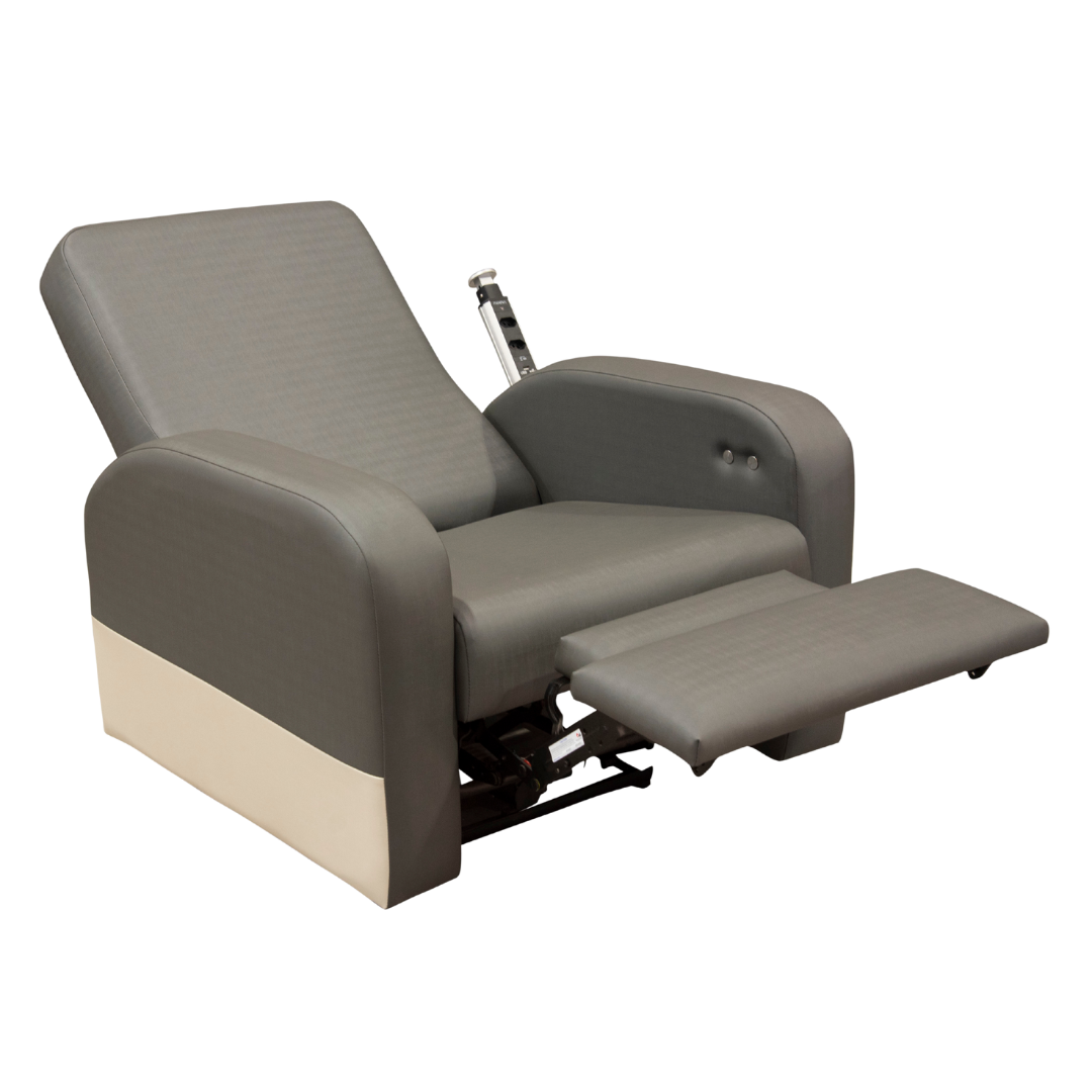 Poltrona hospitalar Zero Wall com reclino elétrico e conexões integradas